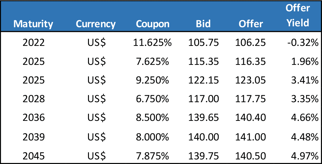 The following are the current Government of Jamaica bond prices as at July 02, 2021: