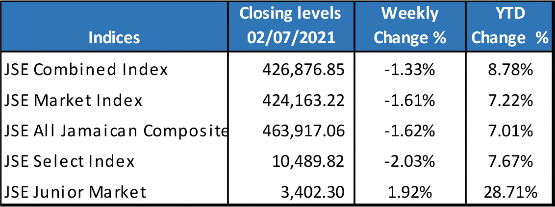 This week’s Market activity resulted from trading in 109 stocks, of which 47 advanced, 51 declined and 8 traded firm. Market volume amounted 91,773,943 units valued at over J$681,322,155.20.