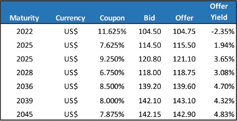 The following are the current Government of Jamaica bond prices as at September 10, 2021: