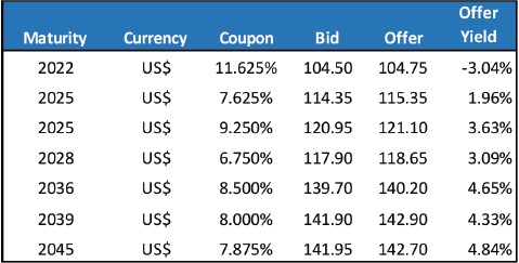 The following are the current Government of Jamaica bond prices as at September 17, 2021: